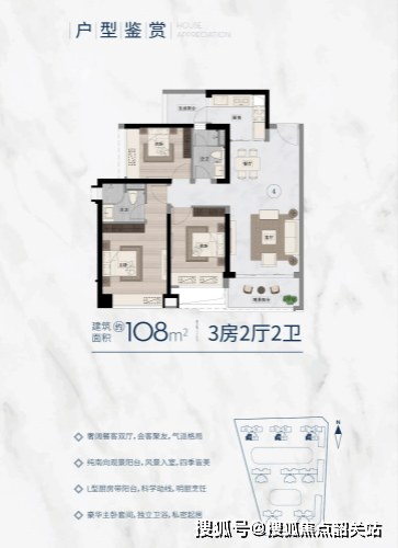 108平方米的三房两厅两卫户型,是项目的刚需主力户型,总价约378万元起,均价38500元/平方米左右。这个户型虽然面积紧凑,但功能齐全,设计巧妙。